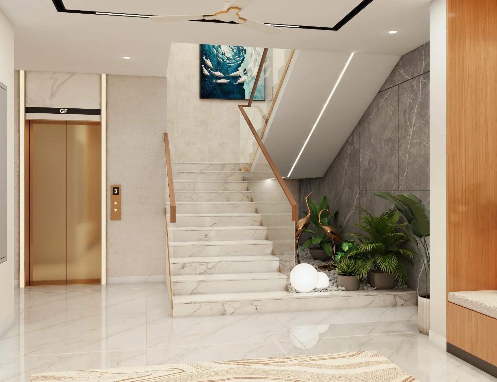airy, light-filled ambiance. A grand staircase welcomes residents into a serene